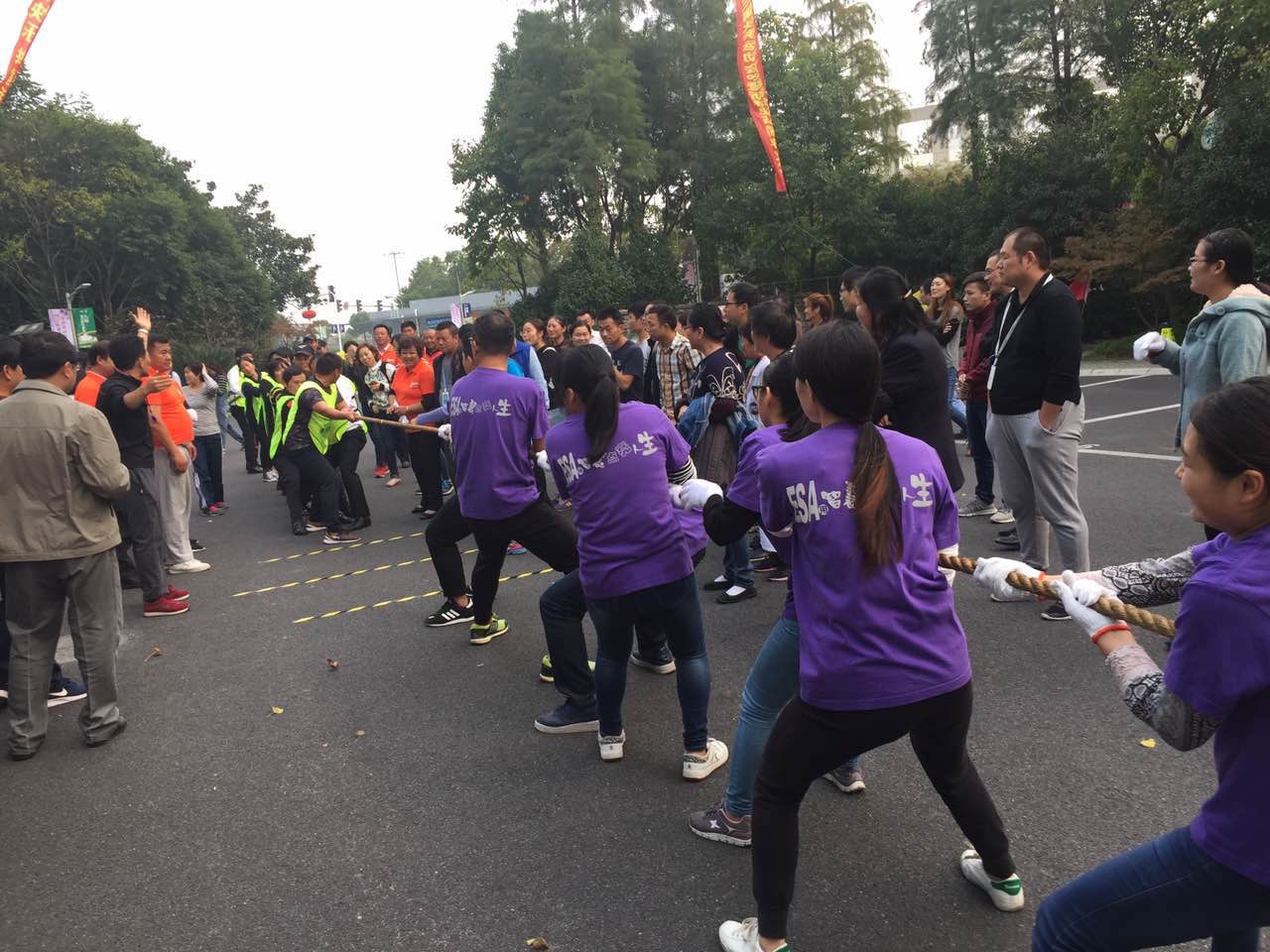 考验集体力量拔河比赛中,随着裁判员的一声哨响,绳子在双方的交锋中来回移动,拼尽全力。队员们奋力拼搏,赛出了水平、赛出了风格。
