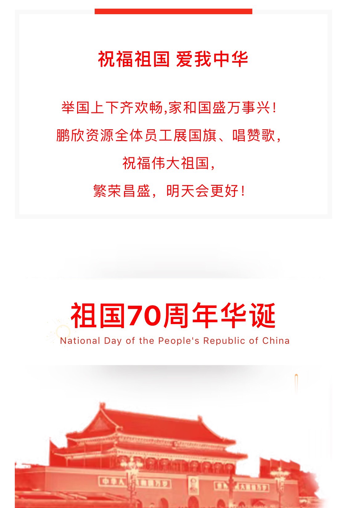 值此祖国70华诞到来之际,鹏欣资源组织开展了一系列“迎国庆、庆华诞”主题系列活动。