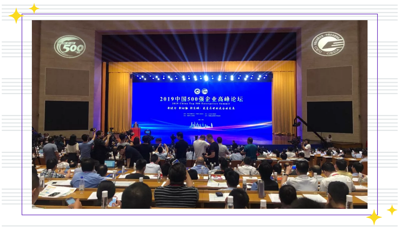 Hosted by China Enterprise Confederation and China Entrepreneurs Association, 2019 China Top 500 Enterprises Summit was held in the banquet hall of Shandong Hotel, Jinan, Shandong Province on September 1st. More than 2,300 people from Shandong Provincial People’s Government, Jinan Municipal People’s Government, China Enterprise Confederation, China Entrepreneurs Association, China Top 500 Entrepreneurs and enterprise representatives, representatives of overseas enterprises, experts and scholars at home and abroad, as well as news media units, etc. attended the summit.