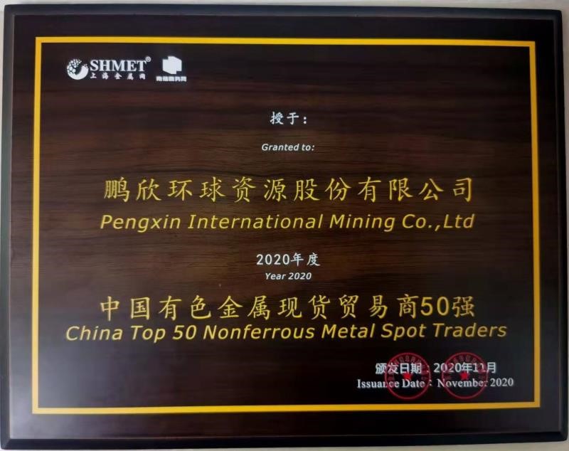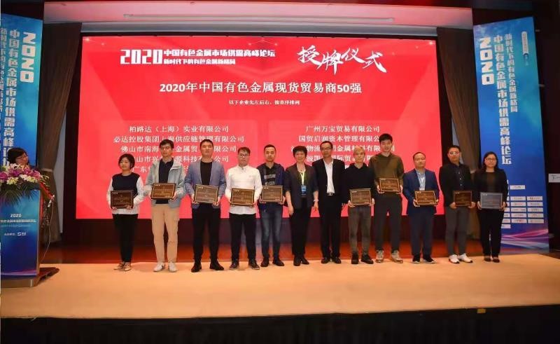 11月18日,“2020年中国有色金属市场供需高峰论坛”在上海锦江汤臣洲际大酒店隆重召开,论坛现场“2020年度中国有色金属贸易商标杆企业榜单”公布,鹏欣资源荣获“中国有色金属现货贸易商50强”。
