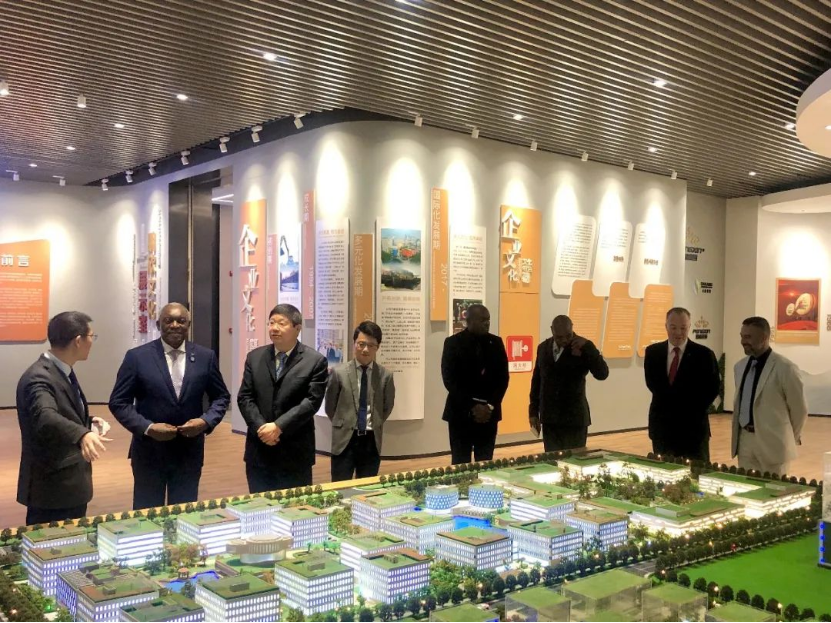 Ambassador Siyabonga Cwele paid a visit to the corporate culture exhibition hall of Pengxin Group at first with his delegation where they watched a film to understand the development history, strategic layout, business planning and corporate culture, etc., of Pengxin Group, after which he spoke highly of the business development of Pengxin Group.