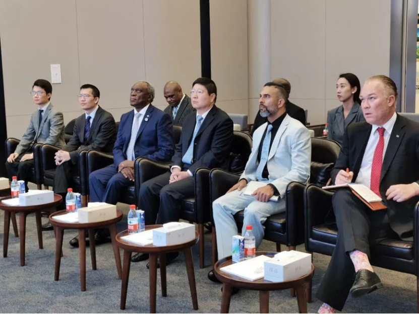Yusuf Timol, minister-counsellor of the South African Embassy in China, Gary James Smith, economic counsellor of the South African Embassy in China, Mbulelo Toli, political consul of the South African Consulate General in Shanghai, Rirhandzhu Mahlale, commercial consul of the South African Consulate General in Shanghai, Chen Guohua, deputy general manager of Pengxin, Li Xuecai, chief financial officer, Gan Fengwei, director of Investment Development Department, and Zhang Wen, manager of Planning and Finance Department, accompanied and attended the conference.