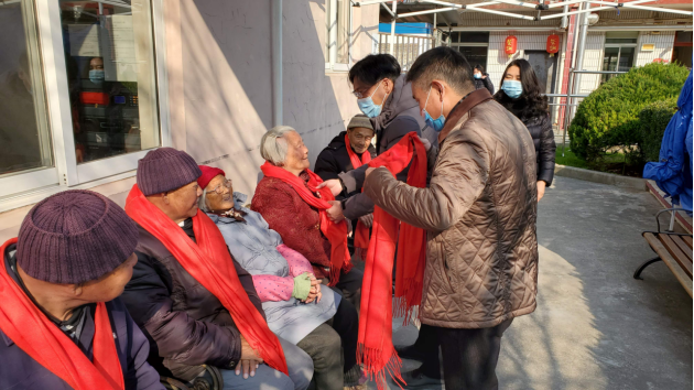 老人们从护理人员手中接过了牛奶、饼干等慰问品,喜笑颜开,戴上寓意着喜庆吉祥的红围巾后连声道谢:“感谢党和国家,感谢企业的关心,敬老院的生活越来越好,我们过上了老有所养的晚年生活,祝愿我们的祖国更加繁荣富强,祝愿鹏欣资源蒸蒸日上。”