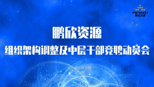 On the afternoon of November 25th, Pengxin Mining successfully held the organizational structure adjustment and mid-level cadres post competition mobilization meeting. The chairman Mr. Wang Jinding attended the meeting and delivered a speech. Mr. Zhu Xiaowei, HR & Administrative Director, presided over the meeting, and the leadership of the company, all employees of Shanghai headquarters, all employees at mid-level and above of business units at home and abroad attended the meeting (online).