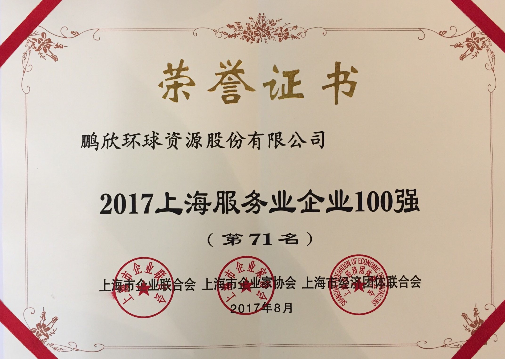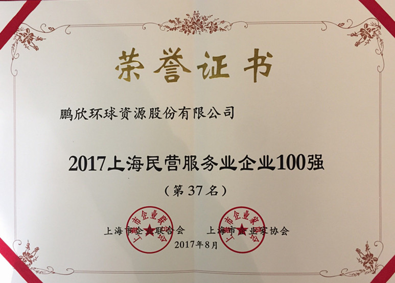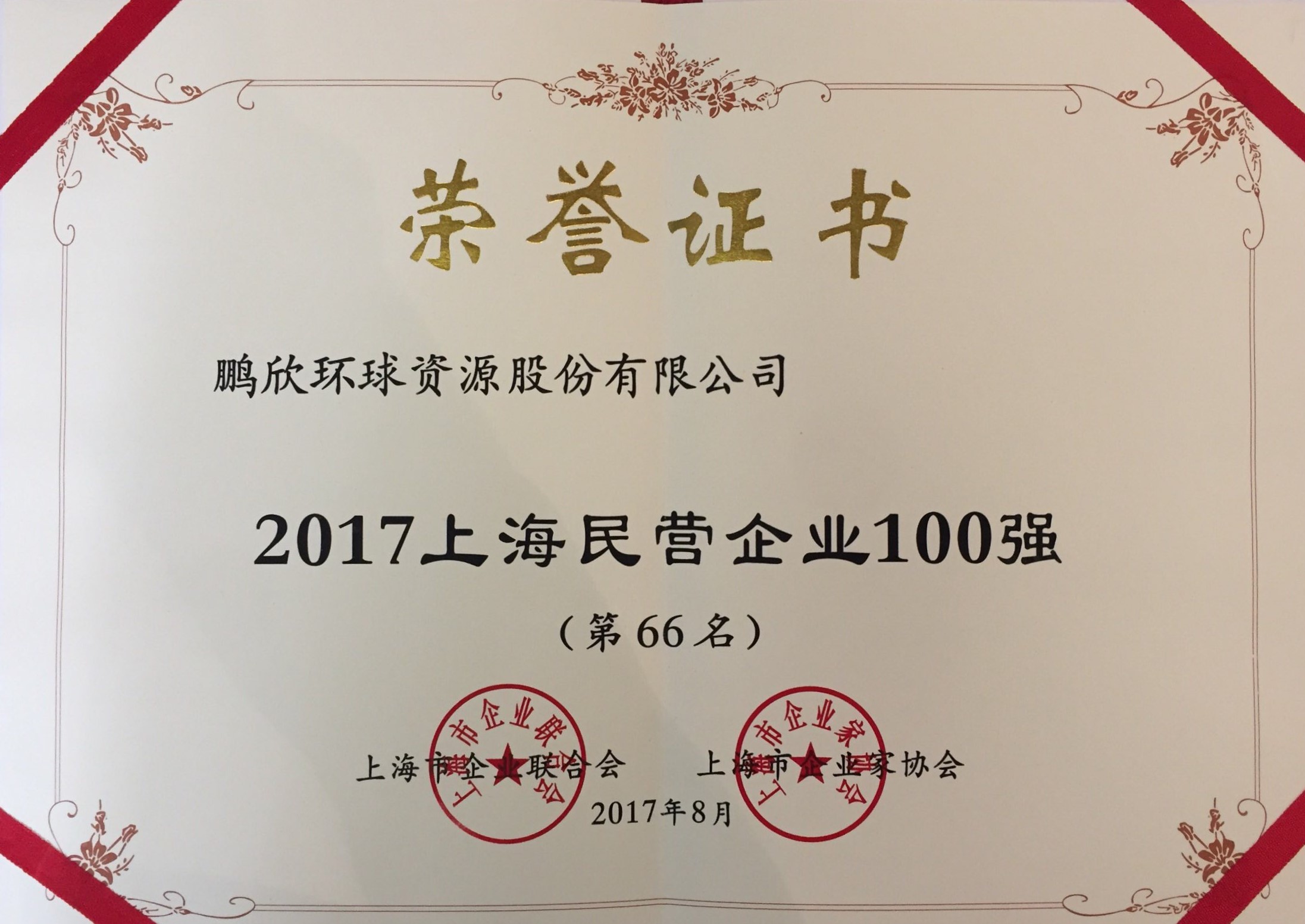 会上2017上海百强企业名单揭晓。鹏欣环球资源股份有限公司继2016年后再次荣登百强榜单,分别获得上海民营企业100强第66位、上海服务业企业100强第71位、上海民营服务业企业100强第37位。