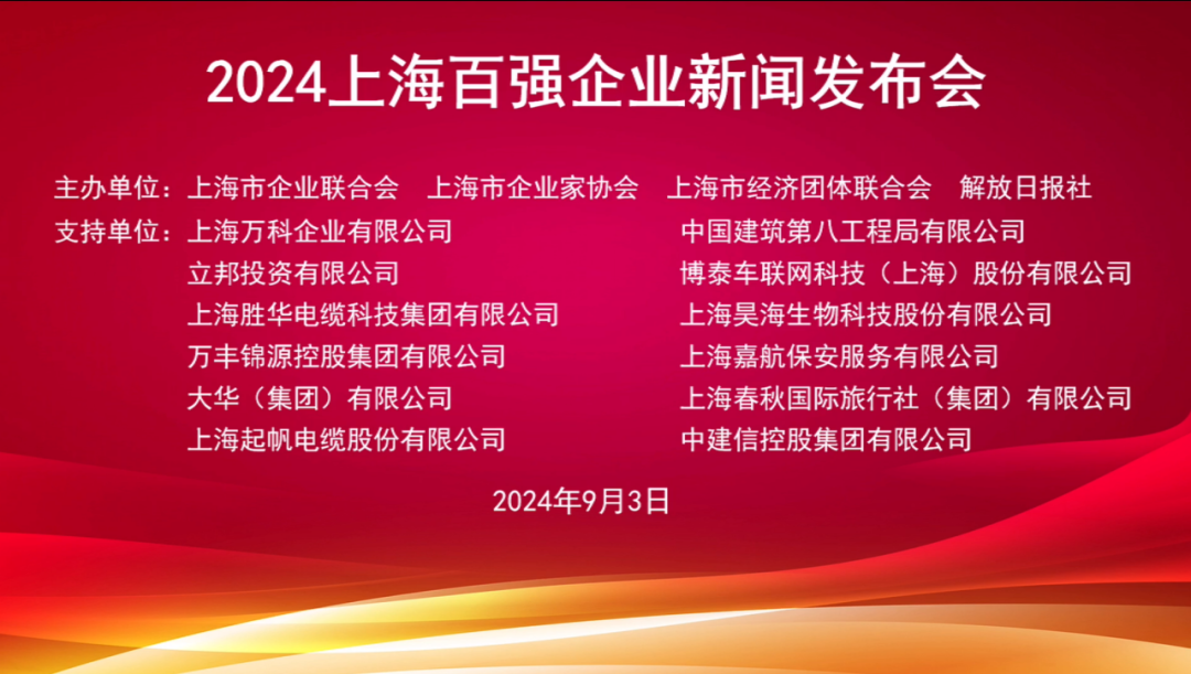 9月3日,由上海市企业联合会、上海市企业家协会、上海市经济团体联合会和解放日报社联合主办的“2024上海百强企业新闻发布会”隆重举行。会上发布了2024上海企业100强、2024上海民营企业100强等多项榜单。
