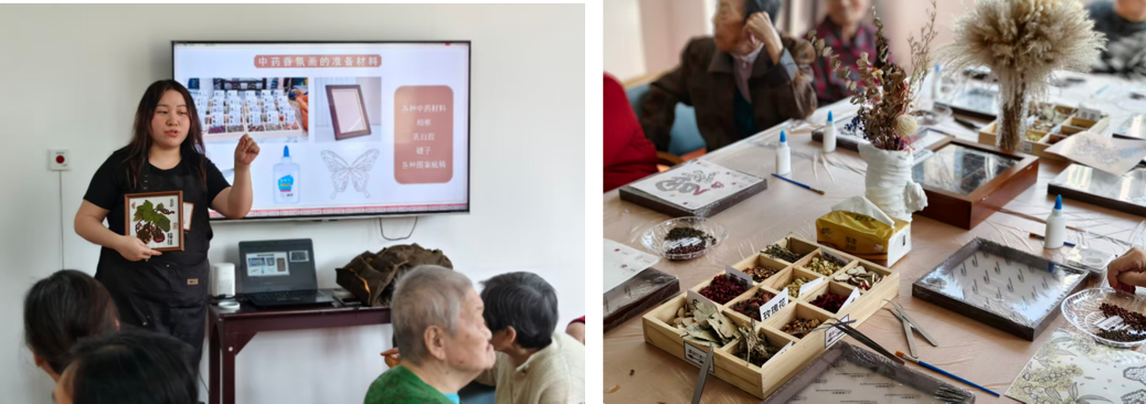 In order to enrich the spiritual and cultural life of the elderly, this activity also specially arranged the cultural experience of hand made traditional Chinese medicine materials. The trainer explained the development history of traditional Chinese medicine, the pharmacological characteristics of different medicinal materials and their application in daily health care for the elderly in simple terms. The old people listened with interest and the atmosphere was harmonious.