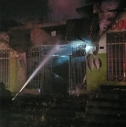 用了不到10分钟的时间,SMCO总经理何寅、集团首席代表经夐和陆卫冲已经组织消防车辆和人员赶到了火灾现场。在当地警方的配合下,火灾现场周边很快被封锁、围观群众也被疏散。现场的道路极为狭窄,发生火灾的房屋屋面为彩钢瓦,室内有吊顶,屋面结构为木质结构,熊熊的火势随时可能让屋面坍塌,而且火势已经窜到其他商铺的屋面,更为严重的是,商铺后面仅一墙之隔还有一个300平方米左右、储存着上百吨玉米粉的仓库。凭借着丰富的实战经验,大家冷静而又迅速地确定了对策。训练有素的消防队员们兵分两路,一路队员扑灭外围明火,另一路队员对玉米粉仓库实施保护,防止玉米粉燃烧发生爆炸。队员们对屋面彩钢瓦进行水枪喷水降温,拆除完室外有危险隐患的雨棚等临时建筑物后,打开商铺门,在室外对室内明火进行扑灭。同时,与当地警方协商后,拆除了相邻已清空商铺的部分吊顶,然后由此部位进入屋面与吊顶夹层进行高压水枪的明火扑灭。在确保消防队员自身安全的前提下,步步为营、扑灭一段、检查一段,队员们沉着冷静地向前推进着,终于在凌晨1点,火势被扑灭,玉米粉仓库安然无恙,全体队员结束了战斗。