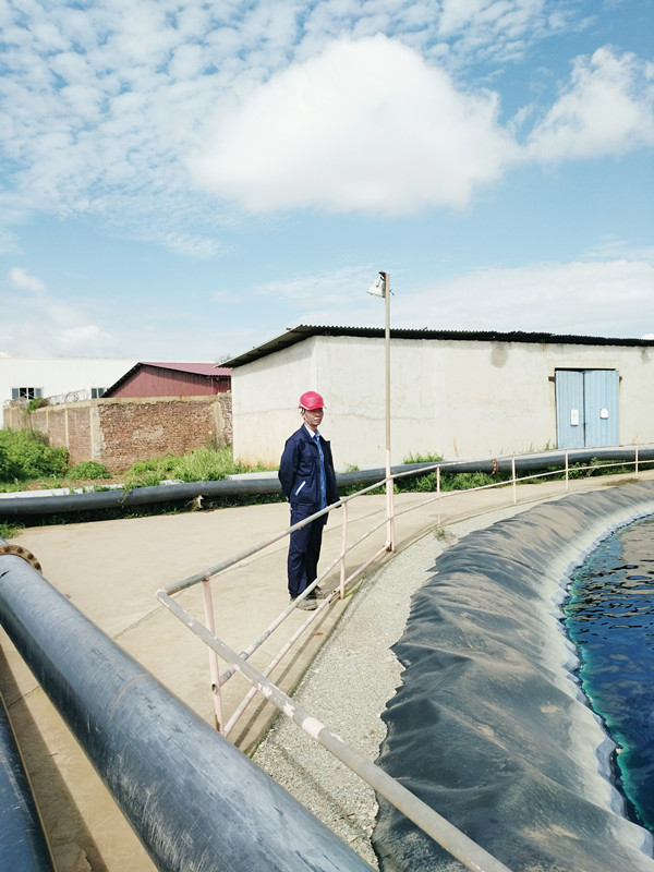 袁葵站在萃取车间1号原液缓冲池边观察料液
